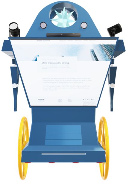 Hermiaca came into existence through a simple, innocent, comment: “you should make the partners of GCIO into characters too…”. A gauntlet thrown down by a member of our Human Resources Internal Communications team, as you can probably tell by their department’s acronym being part of Hermiaca’s name. Serendipitously, a portion of her name spells “Hemia”, the Greek female form of “Hermes”, which means “messenger”, which seems appropriate for the department. Hermiaca’s construction is unique in that it is composed of both the old and the new. She is powered by the Crystal of Creativity, located at the center of her Curved Cranial Compartment. In front of the compartment are dual cameras & projection system and a 15-channel speaker bar. At the four corners of her shoulders rest RGB spotlights, used to highlight all the extraordinary things the teams do every day. If she was rotated around, you would see her chest and torso are based on a high-resolution Jumbotron display. Her arms and hands are built on a piston and hinge system which allows them to retract and fold into themselves when the need arises to use the Jumbotron displays on her sides. At the center of her base, you will see paper trays and a hardcopy output slot. Why, in the age of digital technology, would Hermiaca be created with this antiquated technology, you may ask. Simple, it’s because sometimes you just want a hard copy. Speaking of antiquity, did you notice that her horizontal movements are provided by wheels from an antique printing press. On the bottom of her base, in both the front and rear, you will find vertical adjusters. They use magnetic pulse waves to keep her centered and balanced. When she turns around you can see the rear Jumbotron display and at her rear base are horizontal thrusters. To date, the thrusters have only reached a speed of Mach 1.5. Anything faster would make it appear as if she was rushing. |
